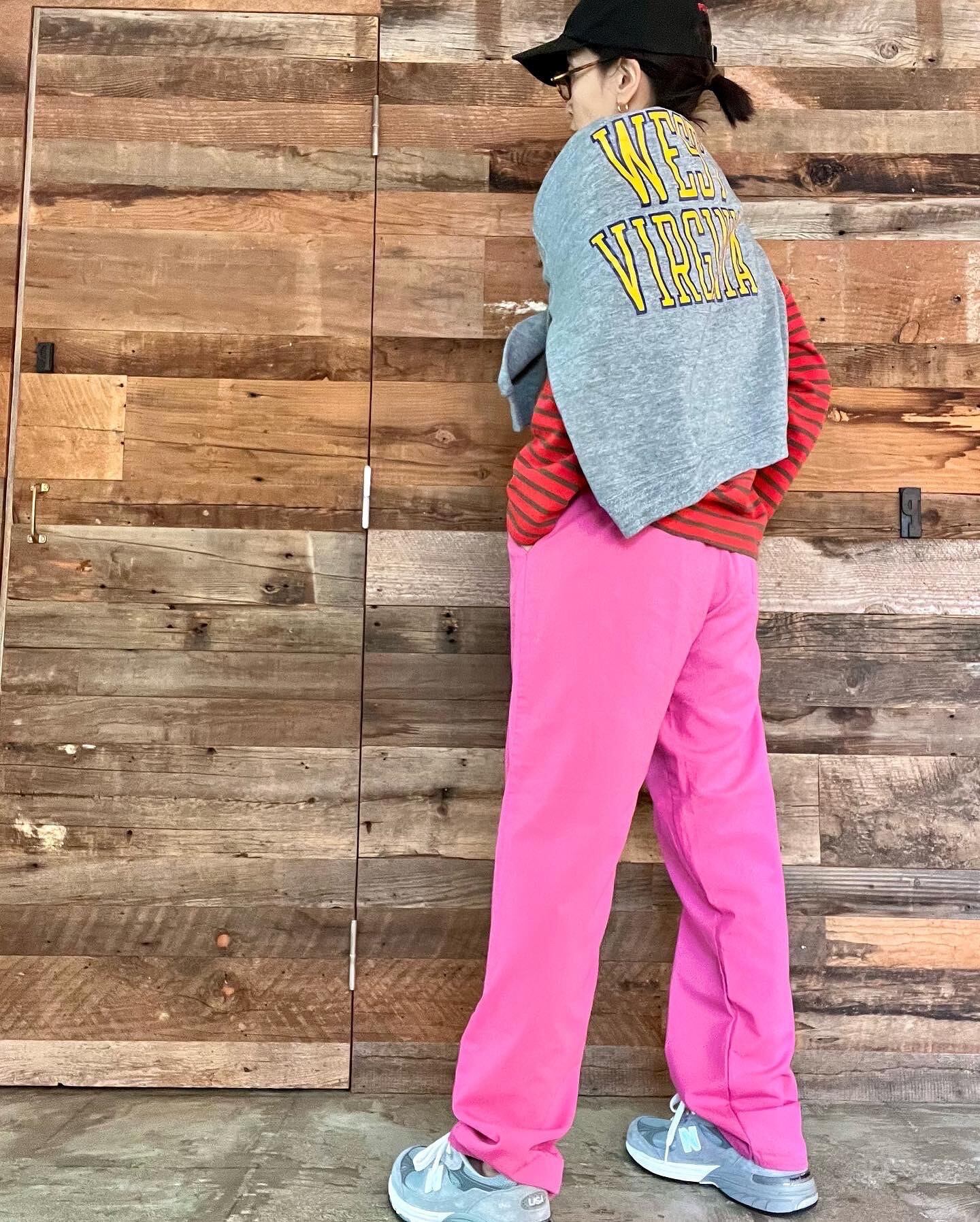 おそらくレーヨンで普通の平織りですが、生地のテロっと感にこのディテールの組み合わせが意外で、軽やかにスニーカーでヘルシーに合わせたいパンツです。