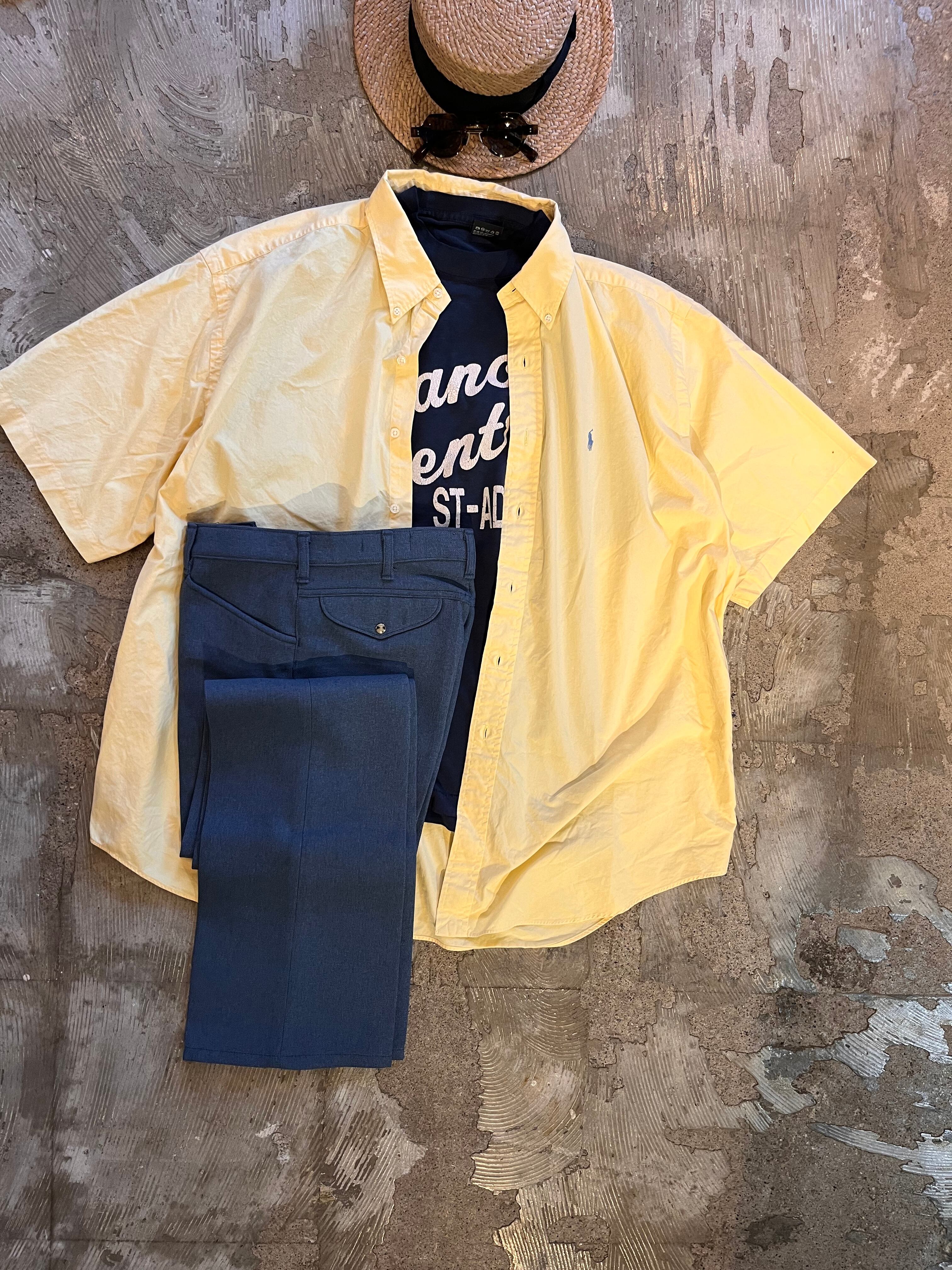 エンジ系のペンキのようなものがついています(前身頃裾近く) 16枚目までの画像でご確認ください