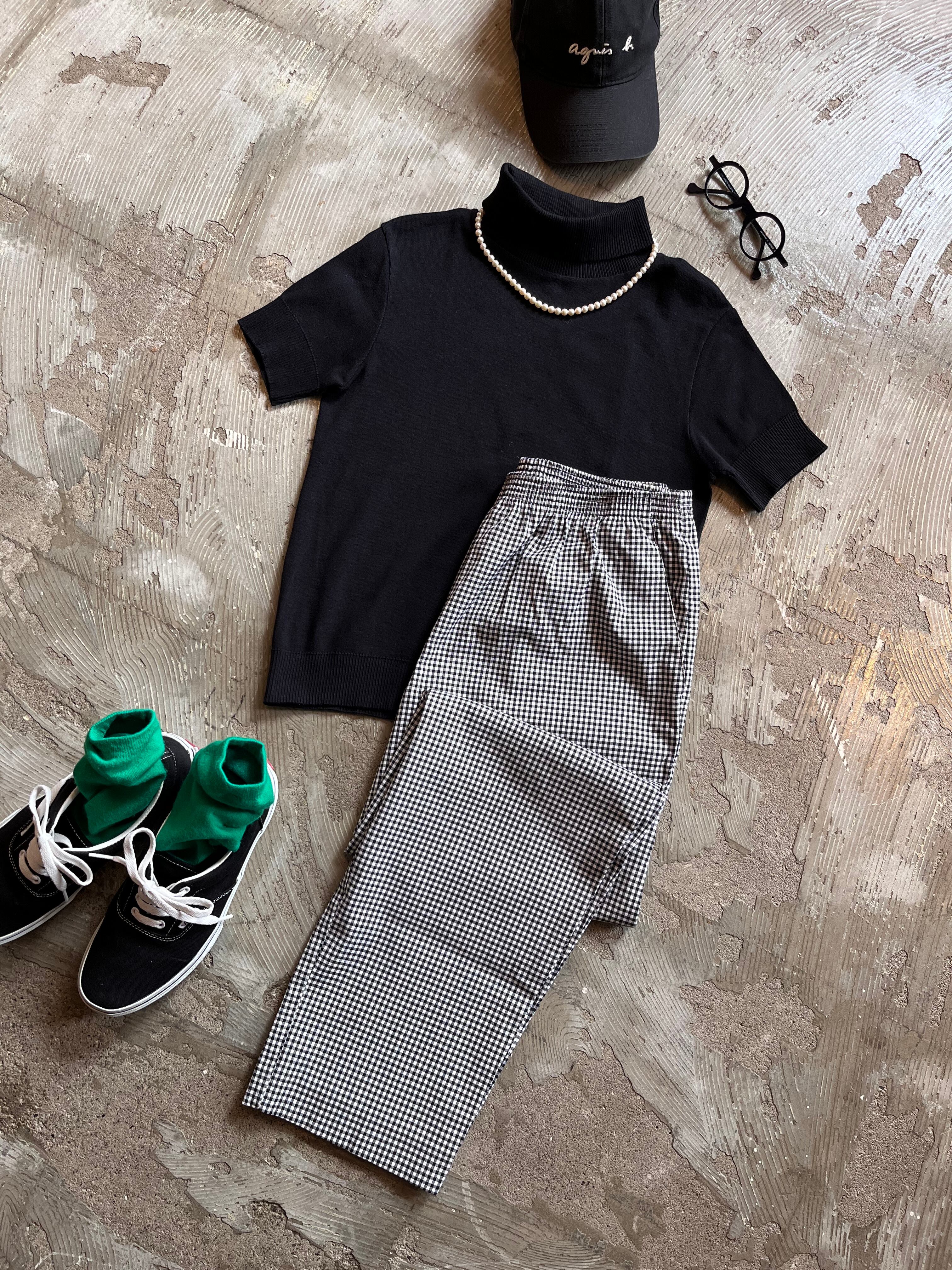 お色はモノトーンで合わせやすく、薄手でハリ感のある生地です。