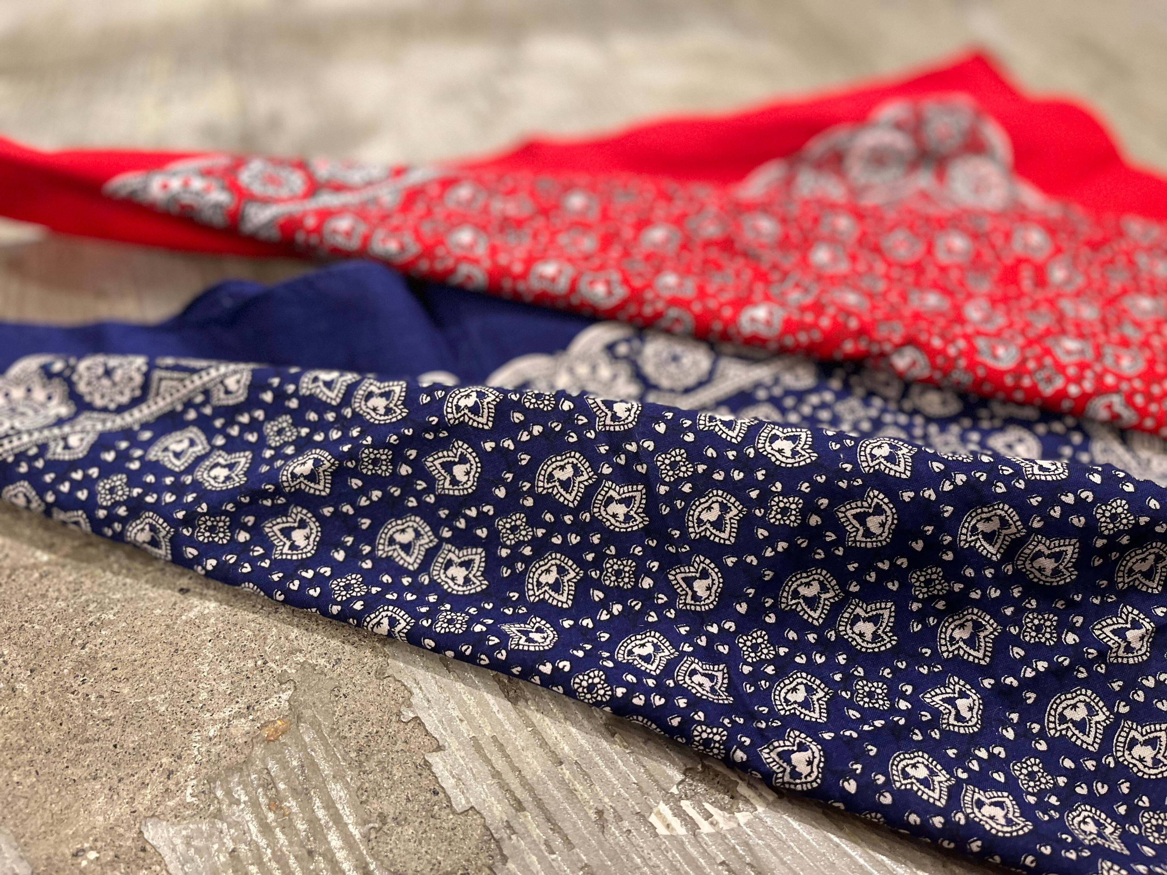 こちらはブルー×ホワイトの配色、オリエンタルの雰囲気も感じる小花の総柄です。