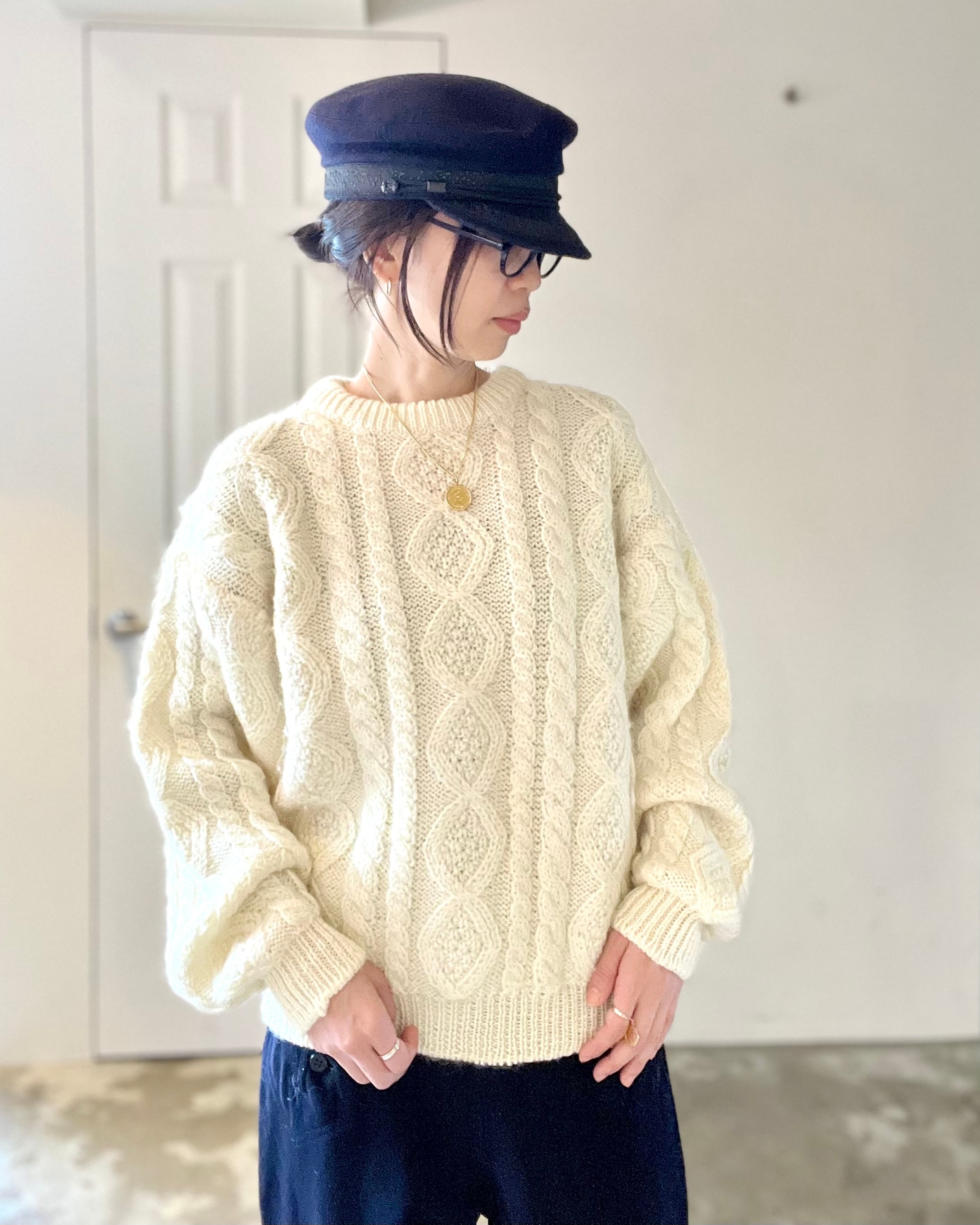 ヘビーなアラン編みが多いですが、こちらはライト目なので、アウターが着やすくこれからのアウターを着る季節も活躍します。