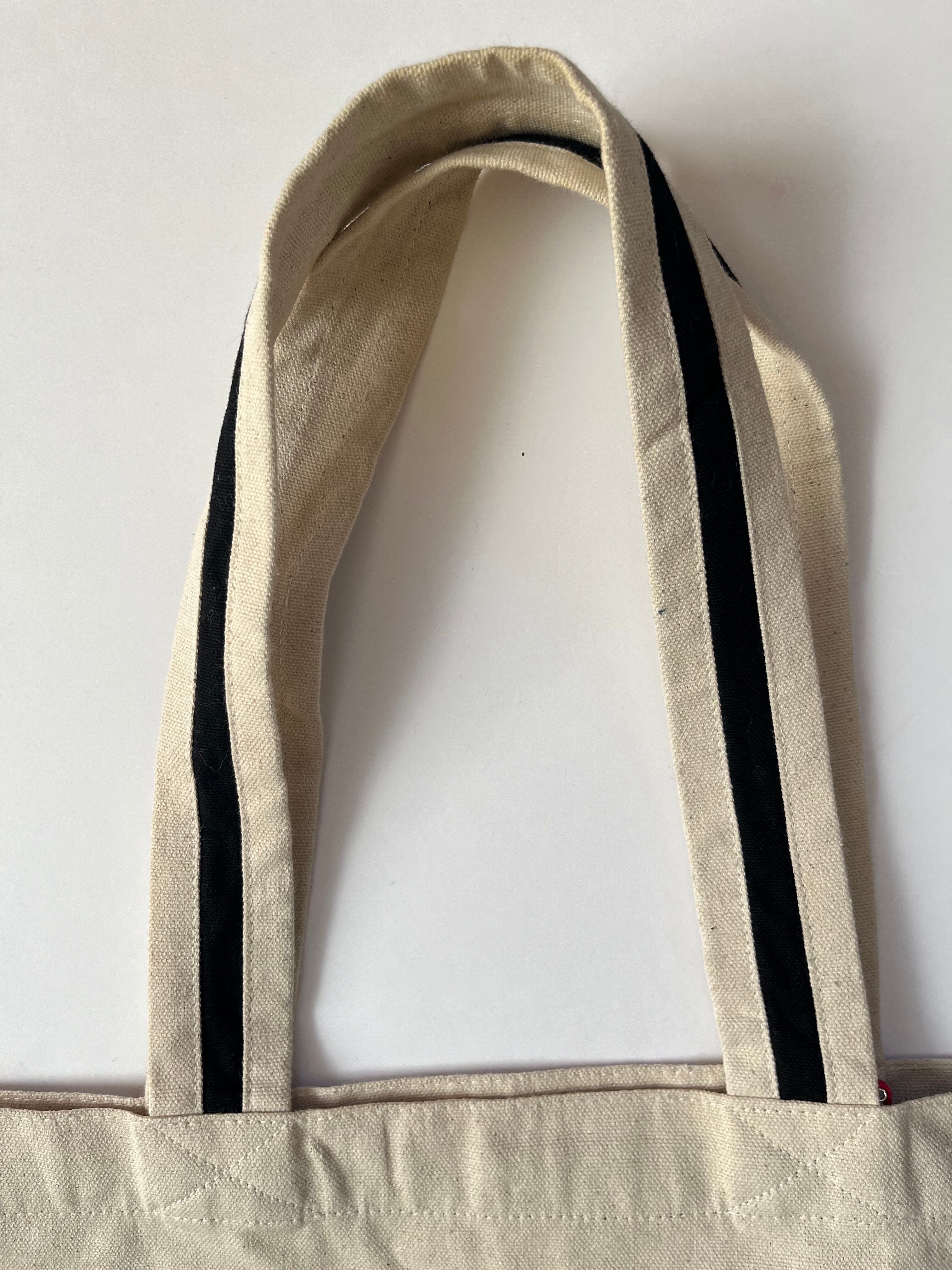 2トーンのキャンバス地トートバッグ。